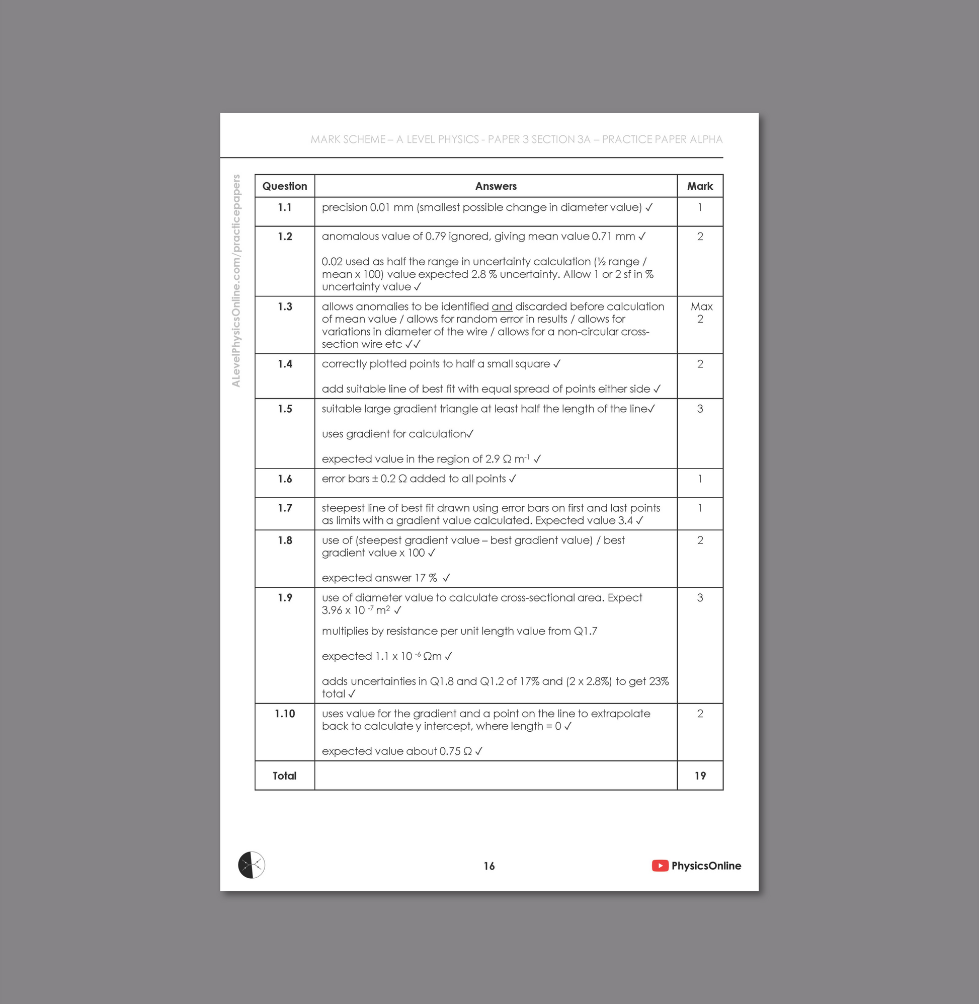 AQA A Level Paper 3 Section A covers the practical side of the A Level Physics exams and is often the hardest type of question paper to find extra examples of.