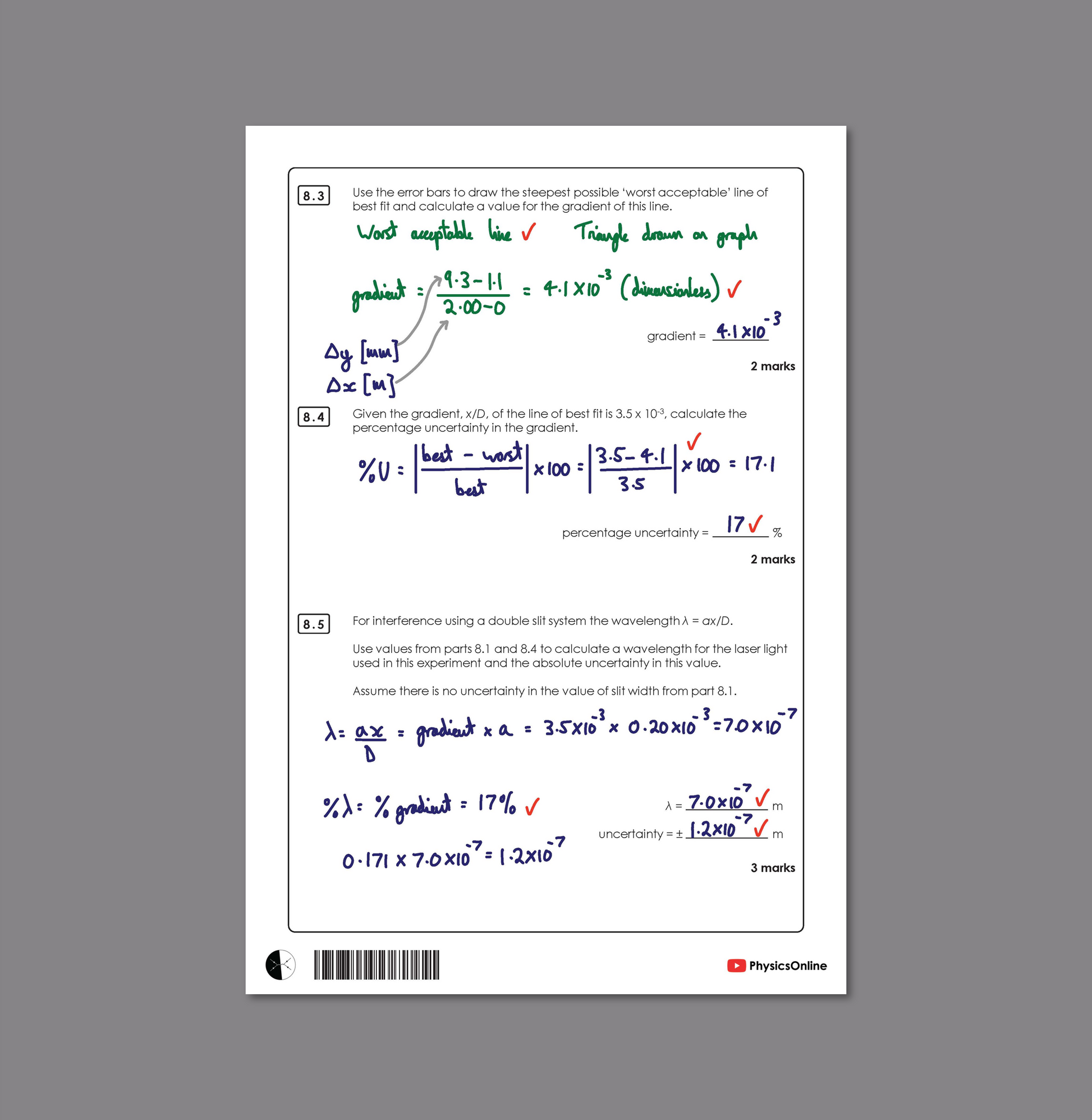 In addition to the questions, it comes with a full mark scheme and my hand written worked solutions showing how similar questions can be approached should they come up in a real exam.